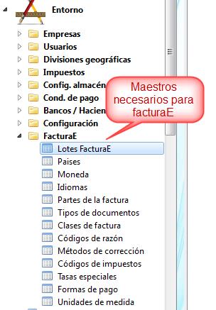 La opción Lotes FacturaE, permitirá un acceso rápido a aquellos lotes de facturaE que hayan sido generados con biNeox. El resto de opciones, hacen referencia a ficheros maestros que se utilizan en la generación del formato facturaE.