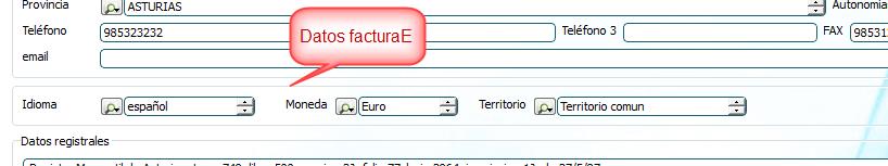 Figura 2. Datos relativos a facturaE en la configuración de la empresa