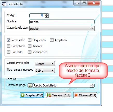 Cada tipo de efecto deberá tener asociado su correspondiente tipo de efecto en el formato facturaE