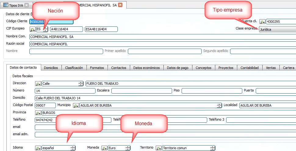 Existen algunos datos básicos que deben estar informados en la ficha del cliente para el que queramos generar facturaE.