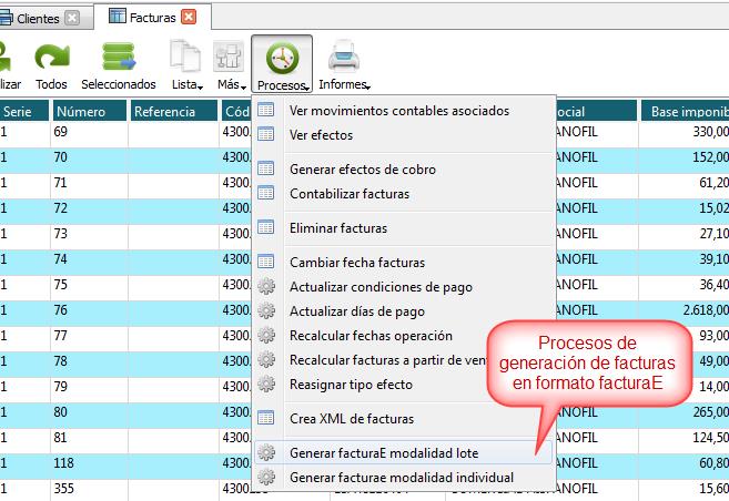 Figura 7. Generación de facturaE desde rejilla de facturas